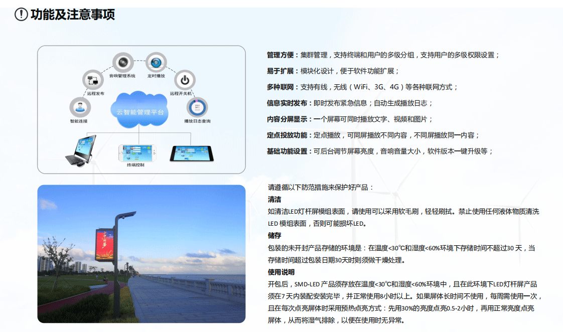 400*800mm全鑄鋁雙面LED燈桿屏,是一款依托互聯(lián)網(wǎng),物聯(lián)網(wǎng)等信息技術(shù)為基礎(chǔ),作為智慧城市的顯示終端,能夠?qū)崿F(xiàn)遠(yuǎn)程集群管理操控的戶外終端設(shè)備。全鑄鋁LED燈桿屏,箱體采用鋁材質(zhì),箱體輕薄,安裝簡單操作方便,適配于不同樣式、高度的智慧燈桿。它具備外觀靚麗、輕盈、時尚、亮度高、高顯色系數(shù)、防水、防爆、防雷等特點(diǎn)的視頻播放裝置,全鑄鋁智慧燈桿屏適用于各高速、交通要道、景區(qū)、賽事場館等。