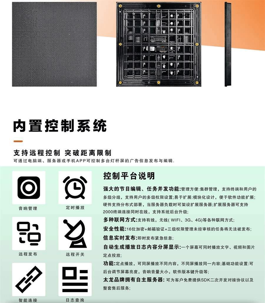 T型立式社區(qū)LED廣告機(jī),尺寸為1200*2400mm,外觀(guān)簡(jiǎn)約時(shí)尚??山邮芏ㄖ苹?。結(jié)合太龍數(shù)十年顯示屏經(jīng)驗(yàn)進(jìn)行創(chuàng)新升級(jí),此款LED廣告機(jī)具有低亮高灰技術(shù)優(yōu)化,細(xì)節(jié)層次感更強(qiáng),各類(lèi)視頻及復(fù)雜圖文顯示更加清晰、色彩更加飽和,長(zhǎng)時(shí)間觀(guān)看不傷眼。集成互聯(lián)網(wǎng),物聯(lián)網(wǎng)等信息技術(shù)的產(chǎn)品,可實(shí)現(xiàn)遠(yuǎn)程操控,多屏同步,信息收發(fā)等。作為革命性的城市信息化產(chǎn)品,實(shí)現(xiàn)了信息釋放和環(huán)保功能,巧妙地融合了城市照明和信息化服務(wù)。